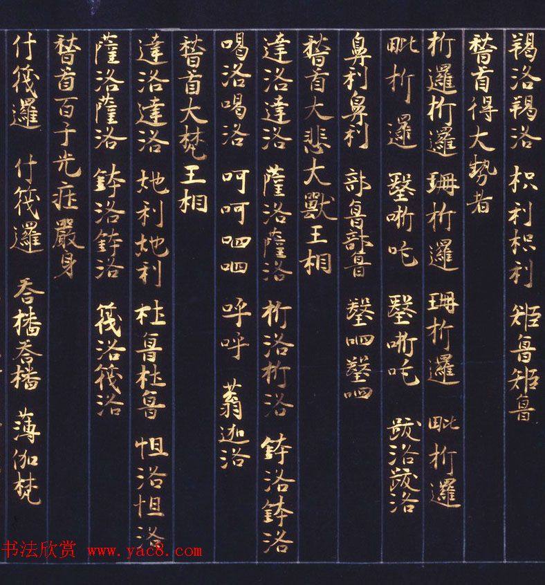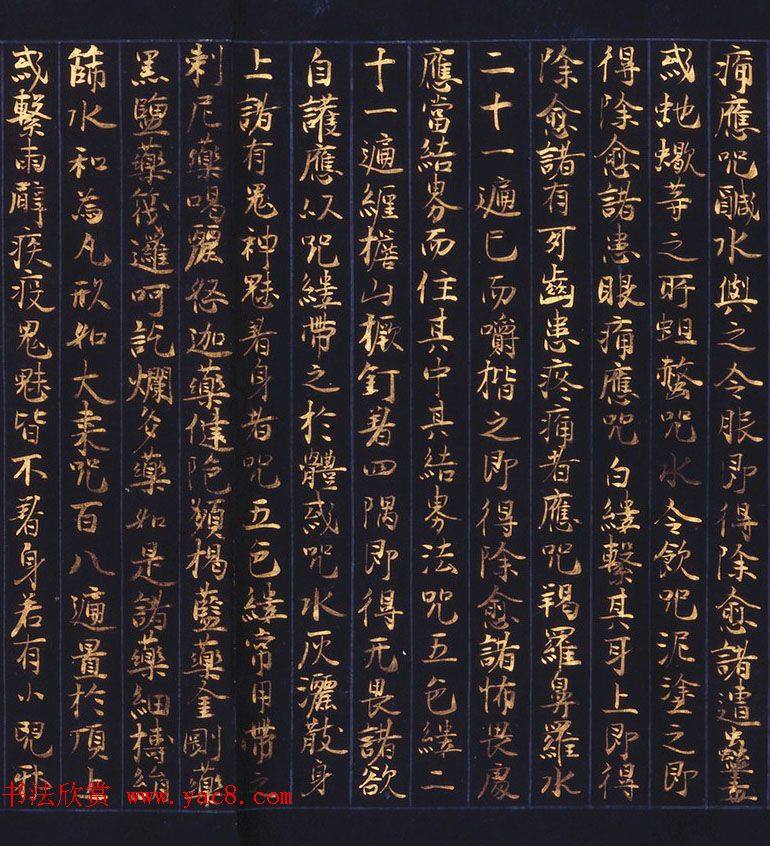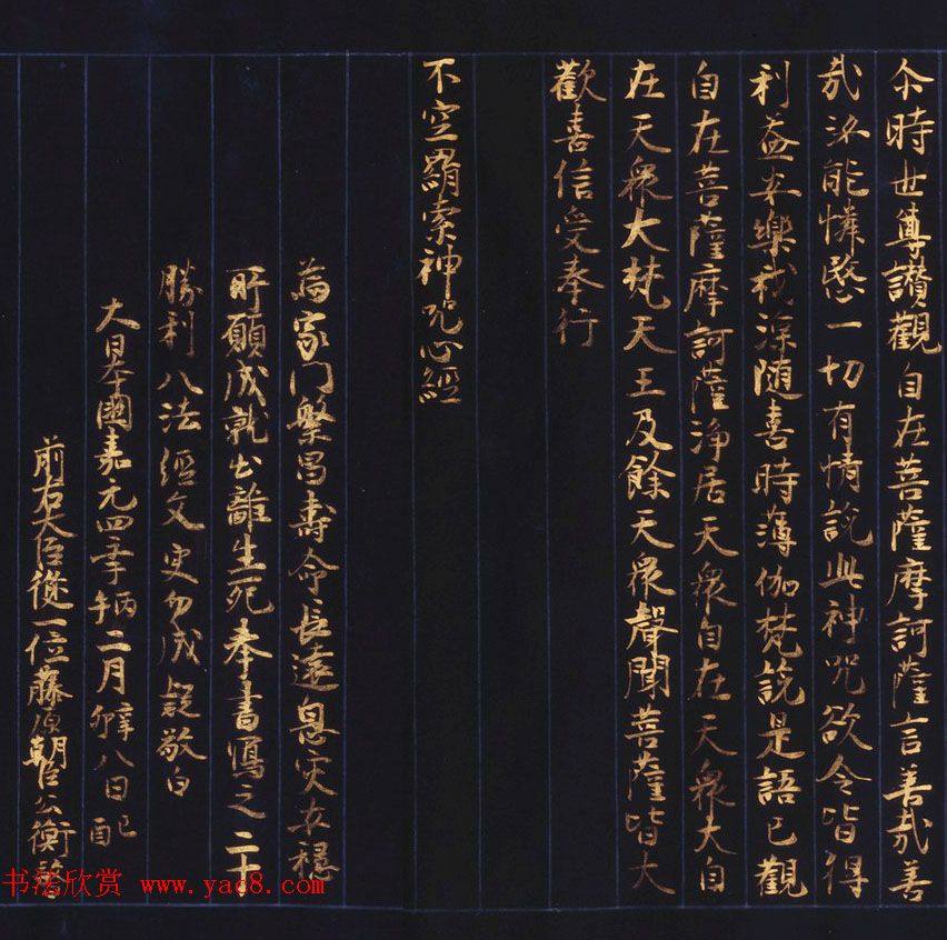 日本西园寺公卫金泥书写《不空羂索神咒心经》敦煌书法