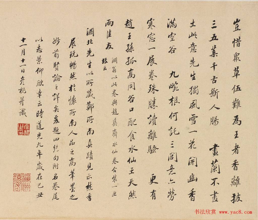 齐彦槐书法题郑思肖(传)墨兰图,美国弗利尔美术馆藏。