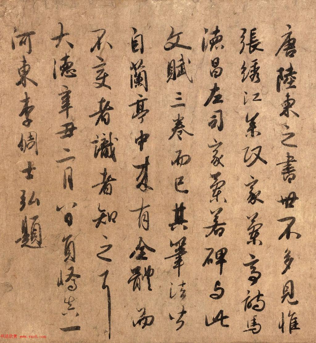 元代李倜书法题跋《陆柬之文赋》,大德乙巳年(1305年),約56歲。台北故宫博物院藏。